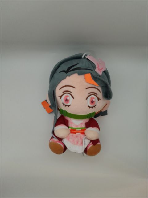 Goodies Peluche Demon Slayer - Nezuko Kamado |  | Personnage | : | Nezuko Kamado, la version peluche qui ne craint pas le soleil. | | Taille | : | 20 cm. Parfaitement proportionnée pour accompagner Tanjiro. | | Détails | : | Son bâillon en bambou et son ruban dans les cheveux sont bien là. Pas de transformation en démon géant prévue, promis. | | État | : | On espère qu'elle est restée bien à l'abri dans sa boîte. Si elle est propre, elle est prête pour l'adoption. | | Vibe | : | Apporte un bonus de +20 en protection fraternelle à ton stock. | la preuve vivante qu'on peut être un démon et garder un cœur d'or (et un bambou dans la bouche pour éviter de grignoter ses amis).