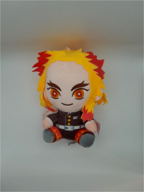Goodies  Peluche Demon Slayer - Kyojuro Rengoku |  | Personnage | : | Kyojuro Rengoku, le type qui ne recule jamais (vraiment jamais). | | Taille | : | 20 cm. De quoi réchauffer l'ambiance de ta soute sans mettre le feu aux rideaux. | | Détails | : | Son haori enflammé et ses sourcils de légende. S'il sourit, c'est que tout va bien (ou que tout va sauter). | | État | : | Étant donné son prestige, on espère qu'il n'a pas fini en cendres. S'il est propre et flamboyant, c'est une pièce de choix. | | Vibe | : | Apporte un bonus de +100 en courage et +50 en appétit. | C'est le genre de type qui te donne envie de manger un bol de riz en hurlant "Délicieux !" à chaque bouchée, même si c'est de la bouillie spatiale périmée.