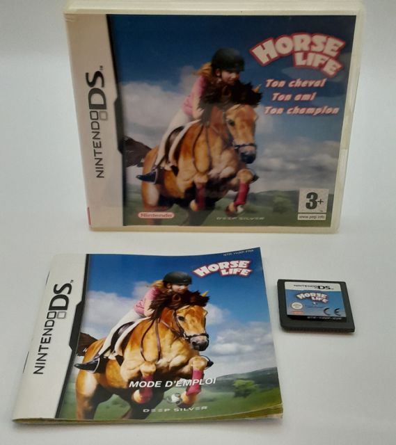 LA FAMILLE NINTENDO DS (DS, DSi, DSLite): LE FUTUR AU BOUT DES DOIGTS Horse Life Nintendo DS |  | Jeu | : | Horse Life (Nintendo DS). | | Contenu | : | Complet (Boîte + Cartouche + Manuel d'origine). | | État Global | : | Très bon (Boîtier propre, cartouche fonctionnelle, manuel non mâchouillé par un poney). | | Vibe | : | +400 en brossage de crinière et +100 en "Hiiihiiiiii !". | le simulateur de canasson par excellence. À l'époque, si tu n'avais pas ce jeu ou Alexandra Ledermann, tu n'existais pas dans la cour de récré.