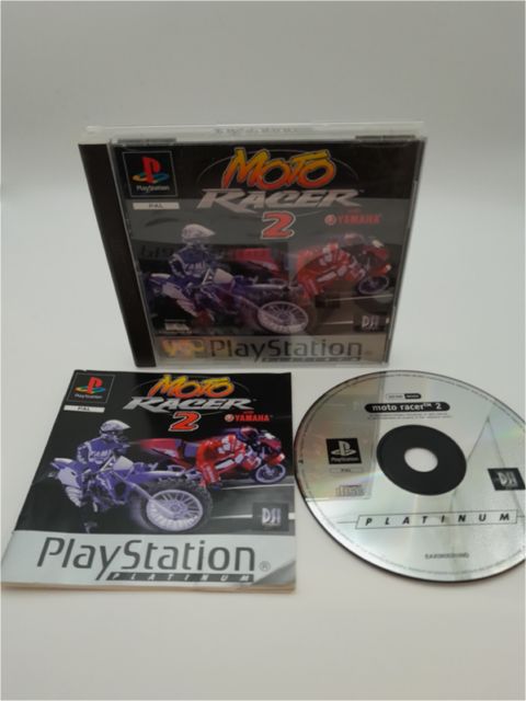PS1 - LA NOSTALGIE PUR JUS Moto Racer 2 Platinum PS1 |  | Jeu | : | Moto Racer 2 (Édition originale ou Platinum). | | Contenu | : | Complet (CD + Manuel d'origine). | | État Interne | : | Très bon / Excellent (Disque qui brille et manuel qui n'a pas pris la poussière du circuit). | | Vibe | : | +400 en sensations de vitesse et +150 en wheelings improbables. | Moto Racer 2, c'est le jeu qui a mis tout le monde d'accord en 1998 : tu avais à la fois de la Vitesse (sur circuit) et du Cross (dans la boue). C'était fluide, rapide, et l'éditeur de circuit était une révolution pour l'époque.